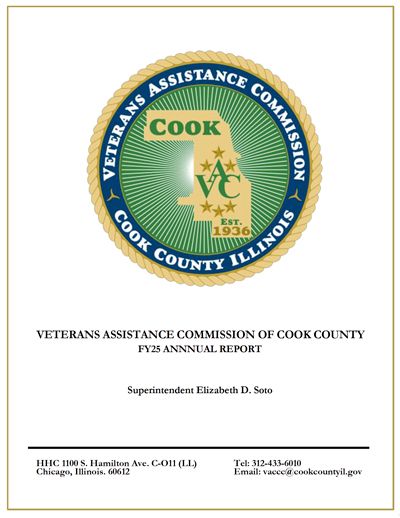 The Veterans Assistance Commission of Cook County (VACCC has released its Fiscal Year 2025 Annual Report, highlighting a year of significant growth, expanded services, and increased support for Cook County Veterans and their families.